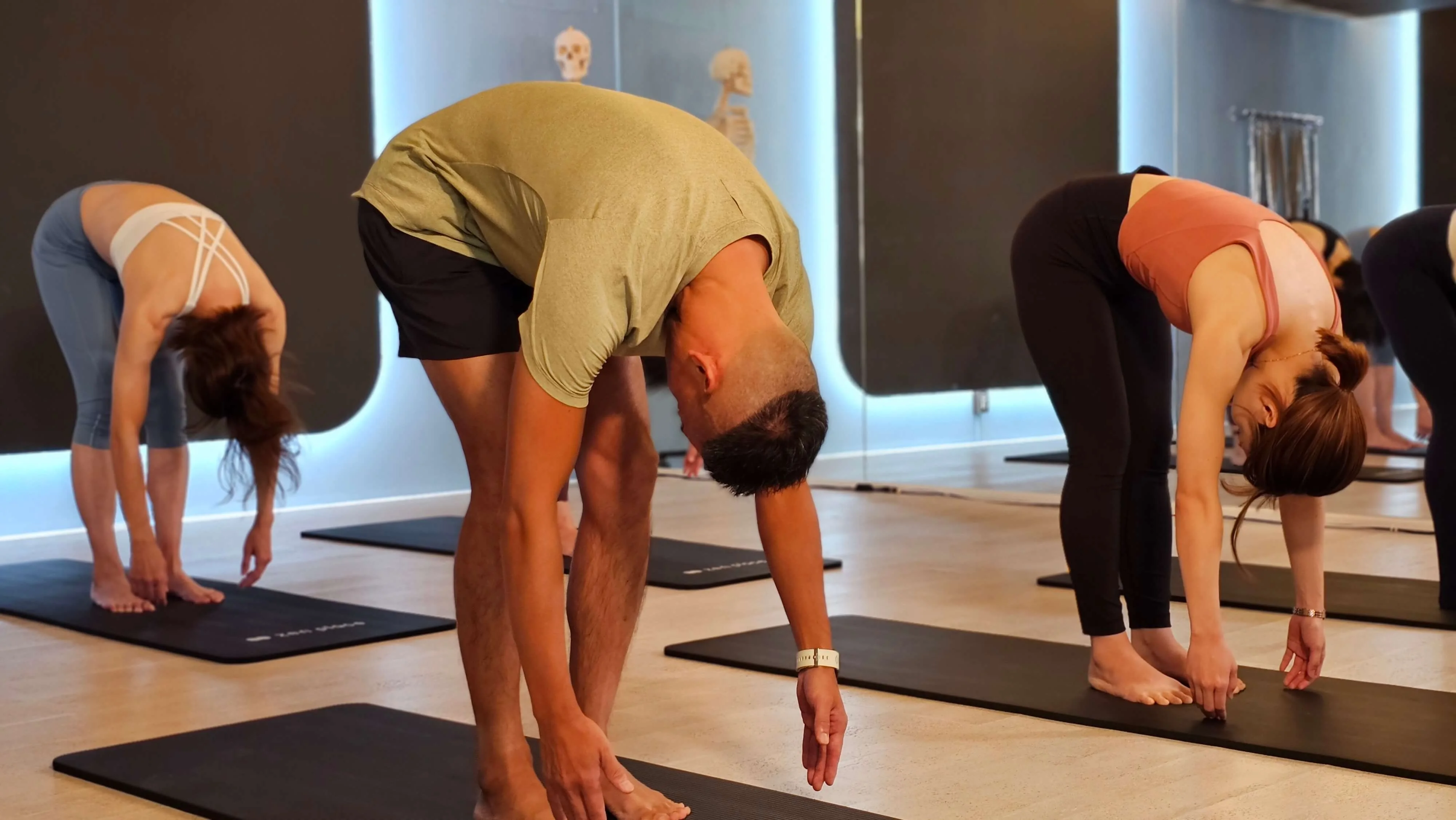立ったまま上体をゆっくり倒し、背骨をしっかり伸ばしてから上体を起こすのがピラティスのロールダウン(スタンディングロールダウン)という基本動作です。背骨は筋肉で支えられていますが、加齢などで筋力が低下すると背骨が支えを失い徐々にバランスを崩して、姿勢が悪くなります。