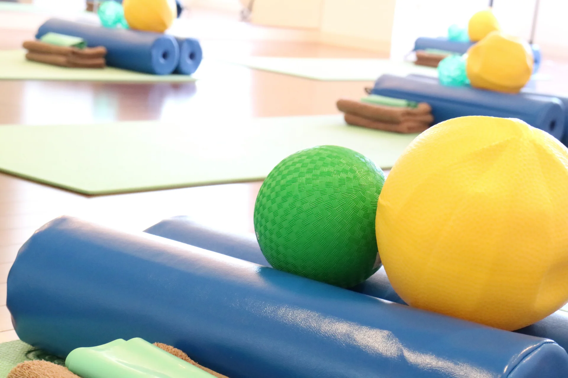 自宅練習用にヨガボールを用意しておくと、レッスンの復習などに役立ちます。