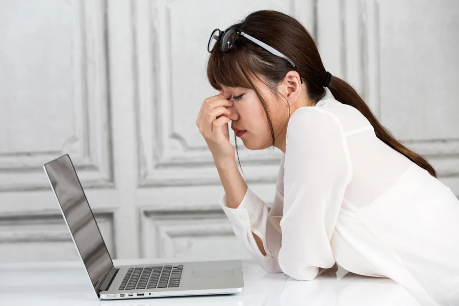 眼精疲労とは、目を長時間使い続けることで目だけでなく身体全身に疲れが蓄積し、十分な睡眠や休息ができないことを指します。パソコンやスマートフォンといったデバイスを長時間使い続けているというよくある事例は、眼精疲労の原因としてよく挙げられています。