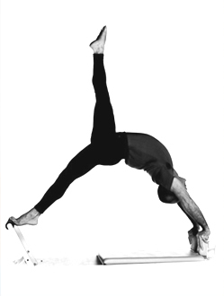 ピラティスの原則で「2方向に伸びる相反する力」があるが、体幹を上下に抜けるこの感覚を掴むことが、 軸を掴んでの回旋動作には不可欠であると言えます。この感覚で掴む以外に、身体の中心lineを掴むことは 難しいのです。このlineを軸として回旋動作を行うことができると、自己の身体の最大スピードでの回旋が 可能になります。最大スピードの回旋動作は最大の遠心力を引き出す重要な要素となります。スポーツで パフォーマンスを最大限引き出すには、回旋動作時の最大パワーを引き上げることは必要不可欠です。 ピラティスでは、この向上を最大限支えることが可能です。