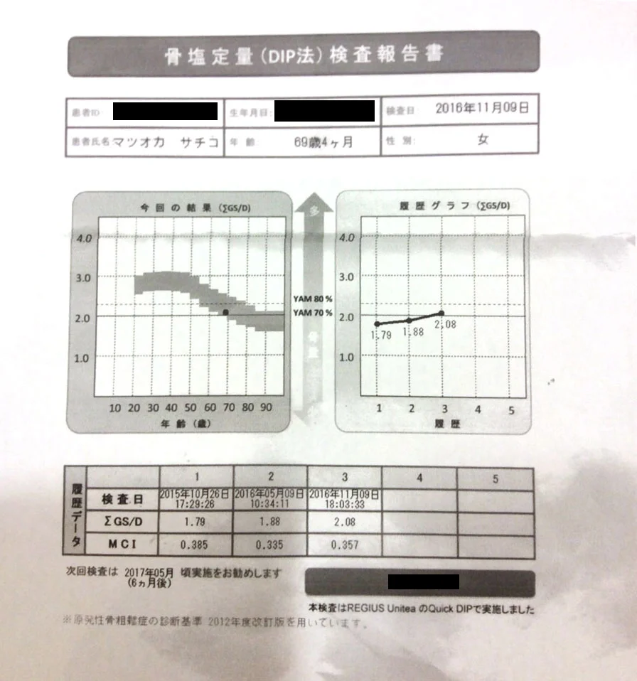 骨塩定量(骨密度)検査 を3回行ったところ骨密度が16%増加!