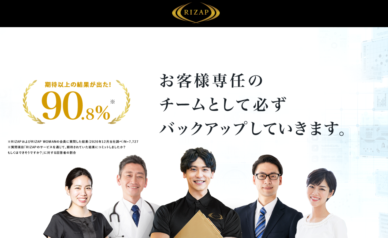 RIZAPは、一般的なフィットネスと比べると高額ではありながらも、「結果にコミットする」をコンセプトとし、徹底的に寄添うマンツーマンのサポートに定評があります。