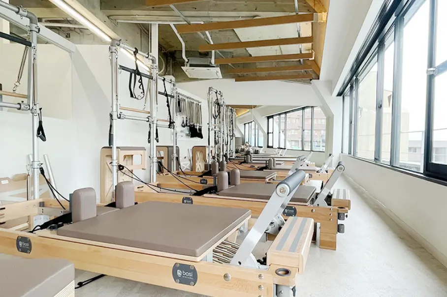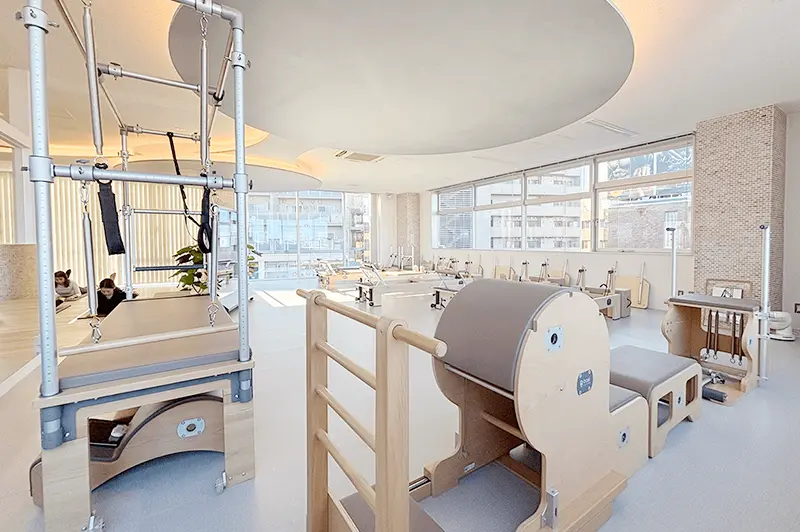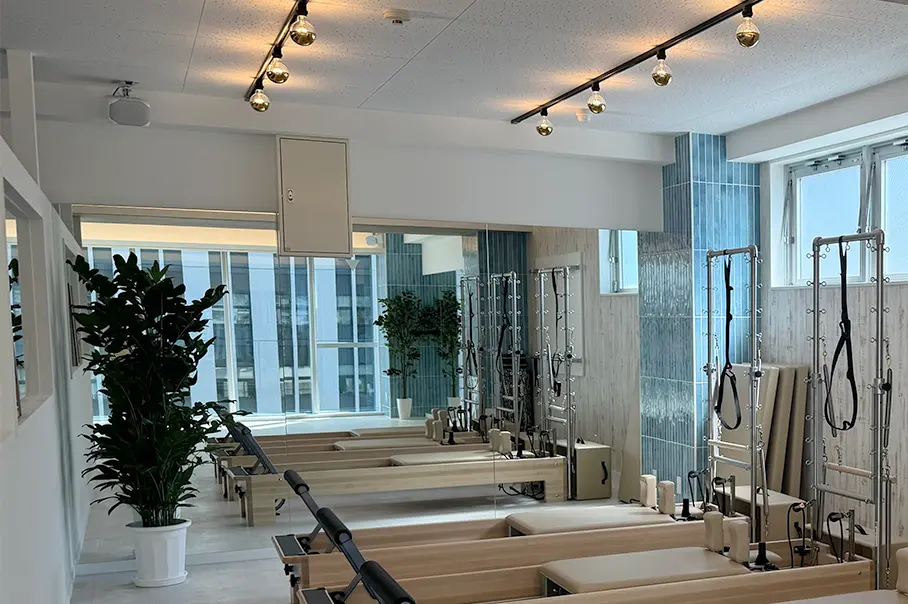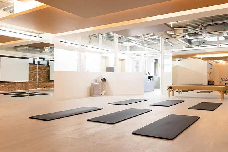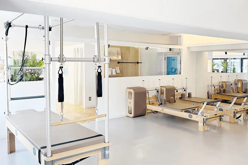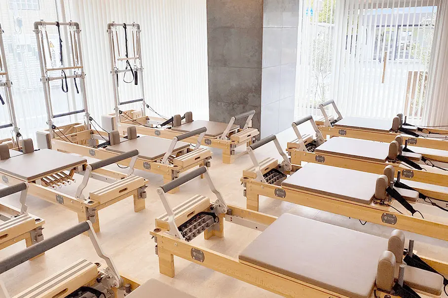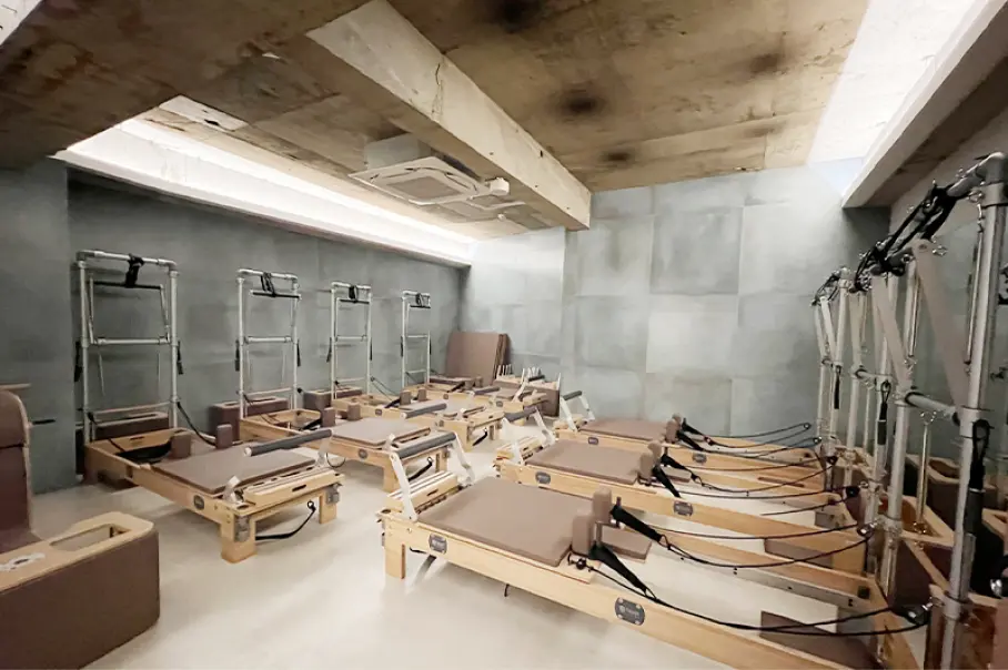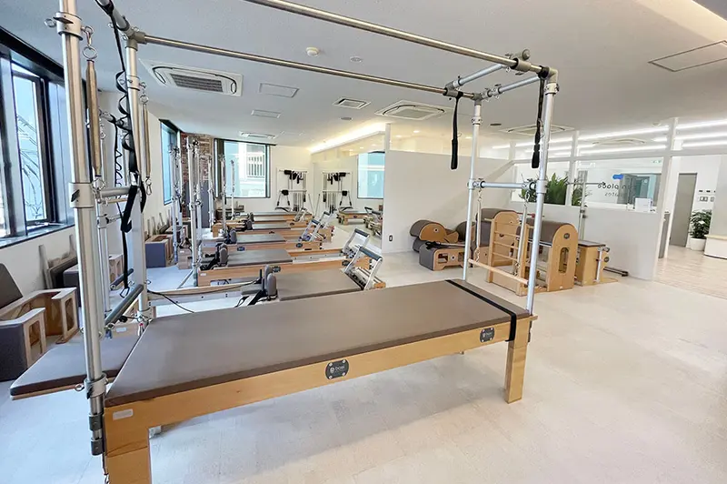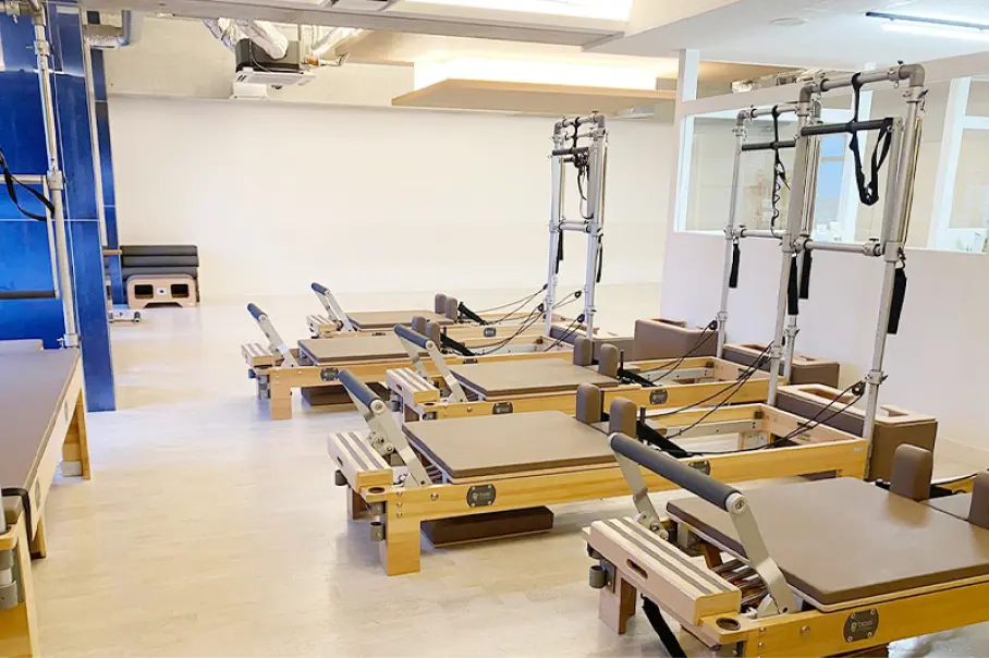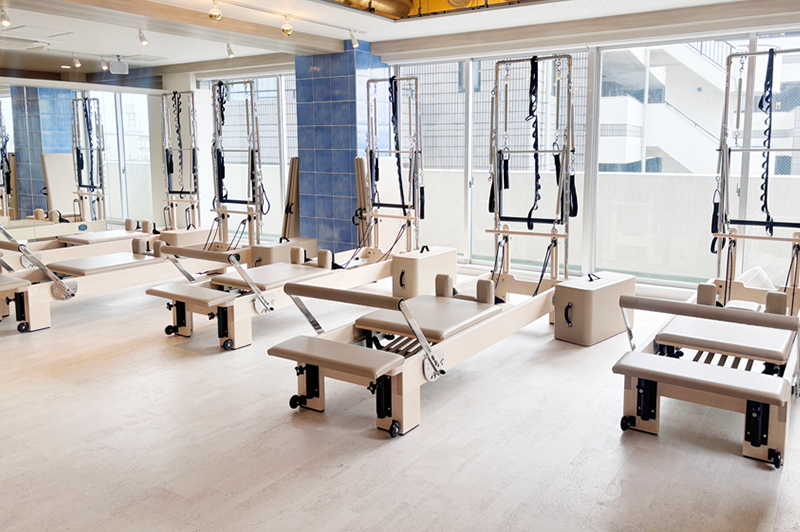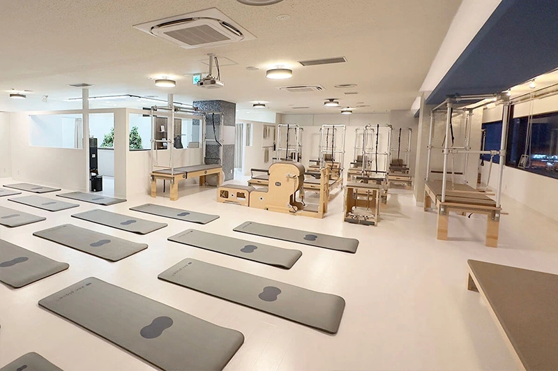 ピラティスマシンを最大規模数設置し、マット、マシン、プライベートからグループまで幅広く豊富なレッスンをご用意。