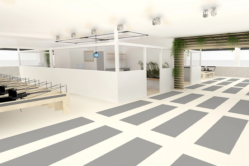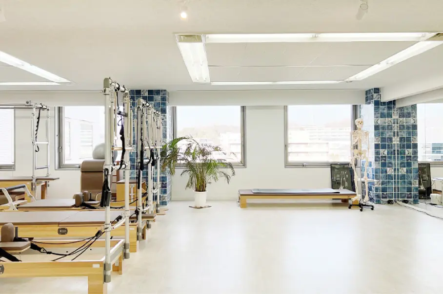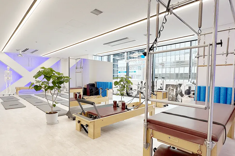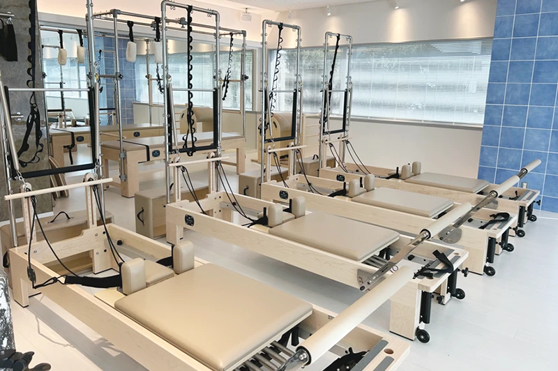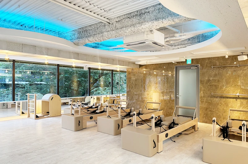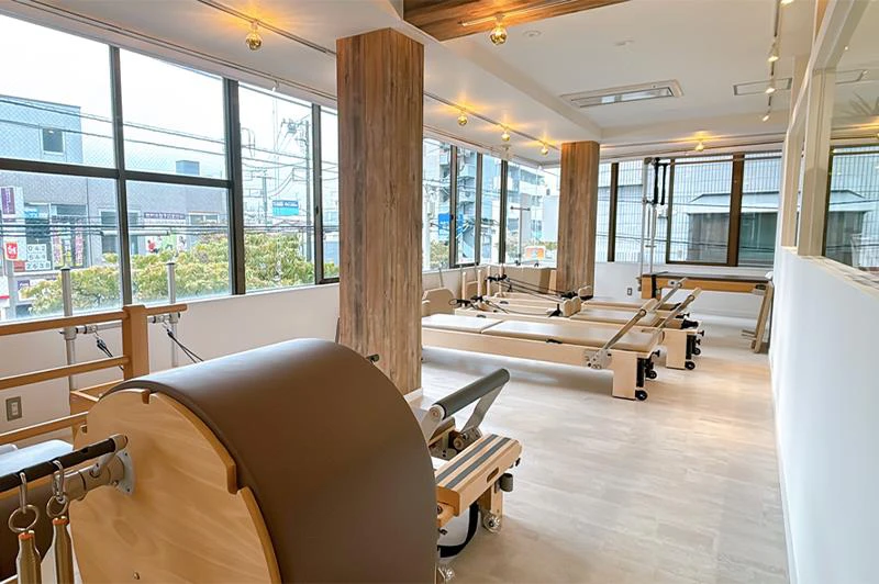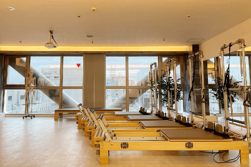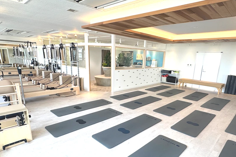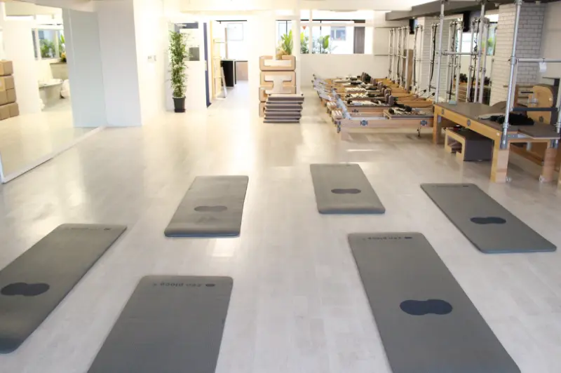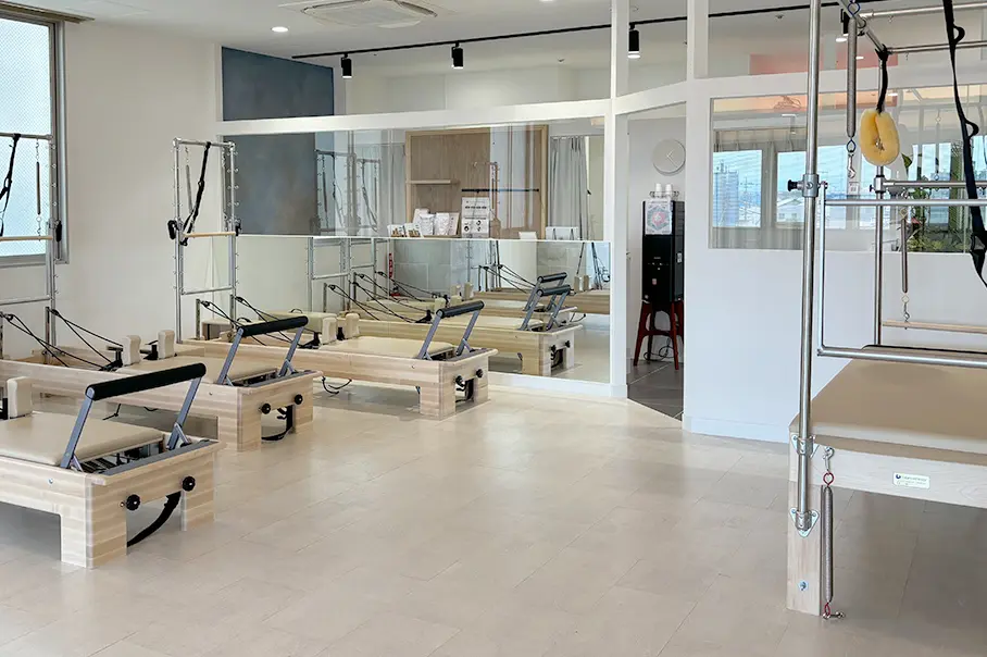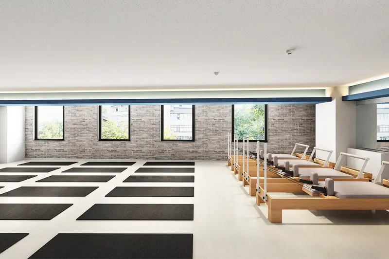 ピラティスマシンを最大規模数設置し、マット、マシン、プライベートからグループまで幅広く豊富なレッスンをご用意。