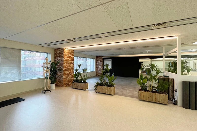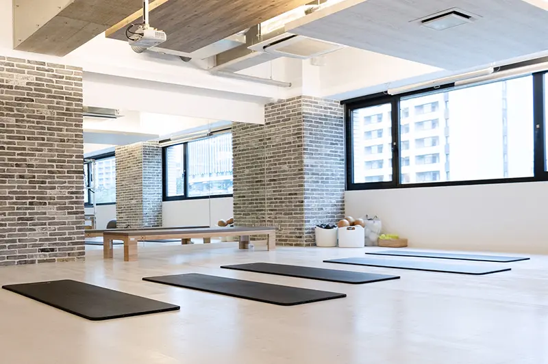 統合スタジオでは、マシン・マットピラティスだけでなく、常温・ホットヨガの受講も可能です。