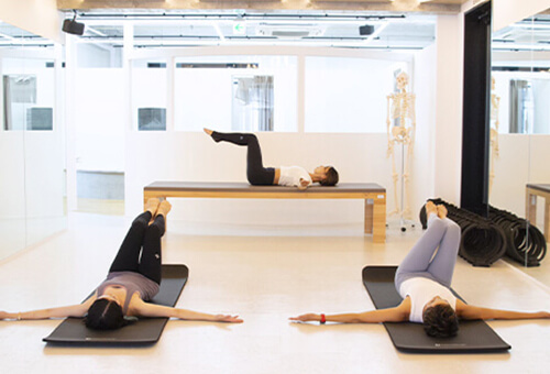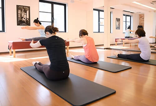ピラティススタジオで行う、専用マシンを使った3人前後〜のレッスンです。