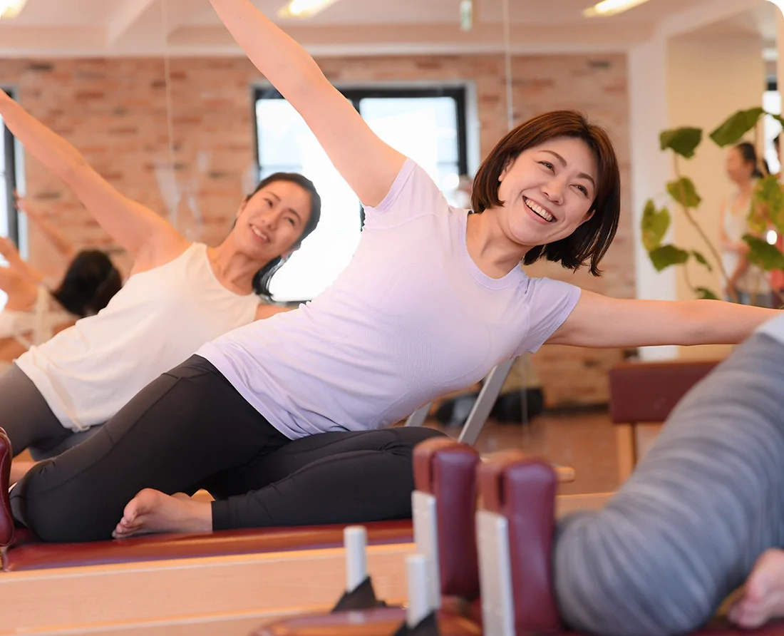 「ピラティス」とは、呼吸と共に背骨やインナーマッスルを動かし、深く集中した状態をつくることで脳の神経を刺激しながら人間が本来持っている機能を正常化し、より良い人生を送るための活力を、最大限に引き出すエクササイズです。
