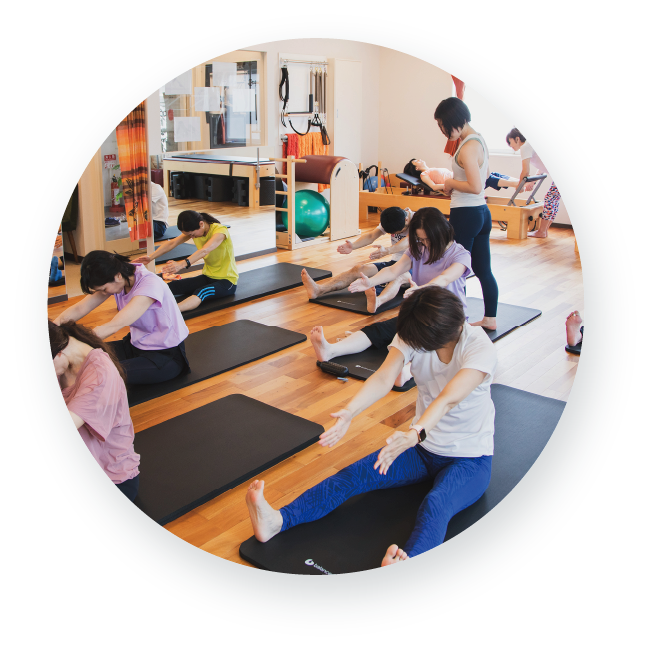 少人数でしっかり見ることができるグループレッスンです。ピラティスマットの上などで、呼吸のリズムや動きのテンポなどを協調させて動くことの気持ち良さ、楽しさを感じていただけるマットワークのレッスンです。様々なレベルのクラスをご用意しておりますのでご自身のピラティス経験に合わせてご参加いただけます。