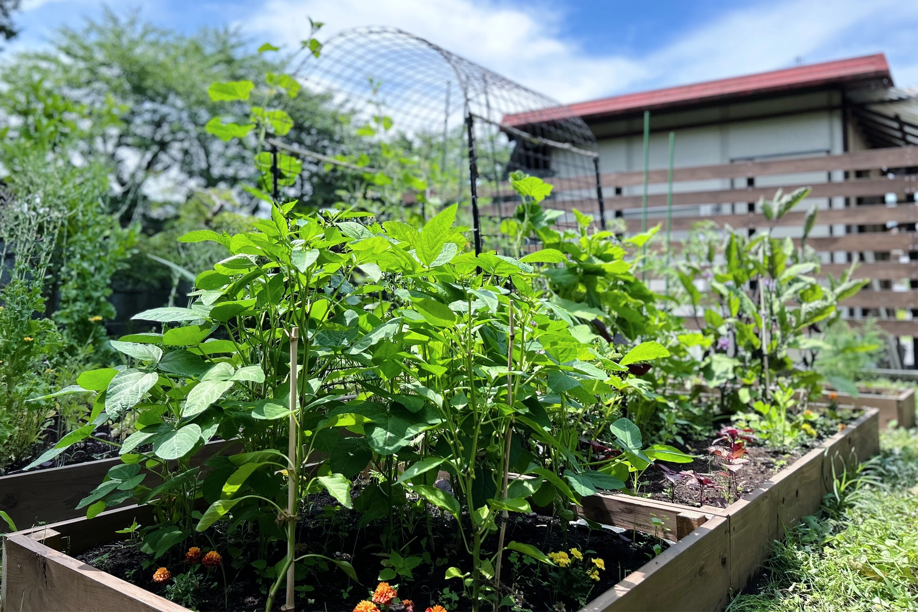 庭にはそのまま食べられる果樹があるし、足元には食べられる野草も生えているわ。畑の野菜は、新鮮な備蓄食料にもなるのね。