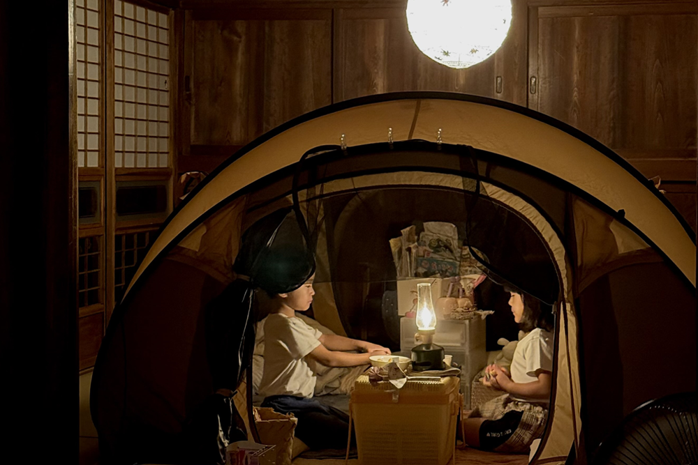 山々に囲まれ、すぐそばには多摩川が流れる青梅の古民家「かのや」。暮らすのは織さんと夫と6歳の双子の子どもたち。ここでは何かを成し遂げるためではなく、日々の中に宿る感覚を丁寧に受け取ることから始まります。