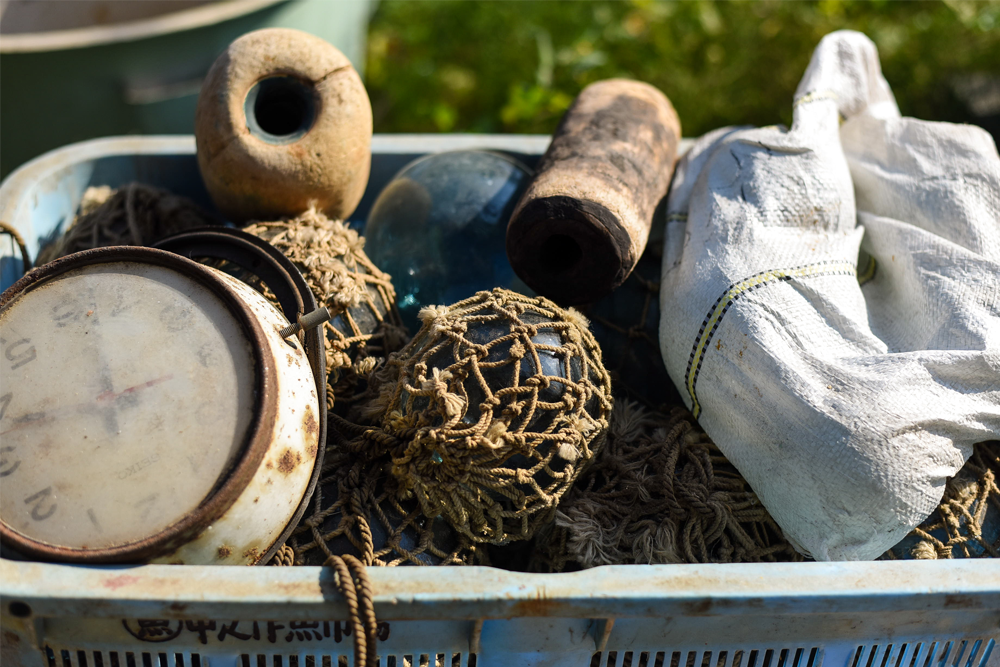 今住んでいるところは実家から車で20分ほどの小さな港町。かつては漁業が盛んで栄えていましたが、今は過疎・高齢化が進んでいます。当時の風景を懐かしむじいちゃんたちは、地元の漁師が使ってきた漁業の道具、通称・漁具(ぎょぐ)を集め、自宅や借りた倉庫に保管していました。