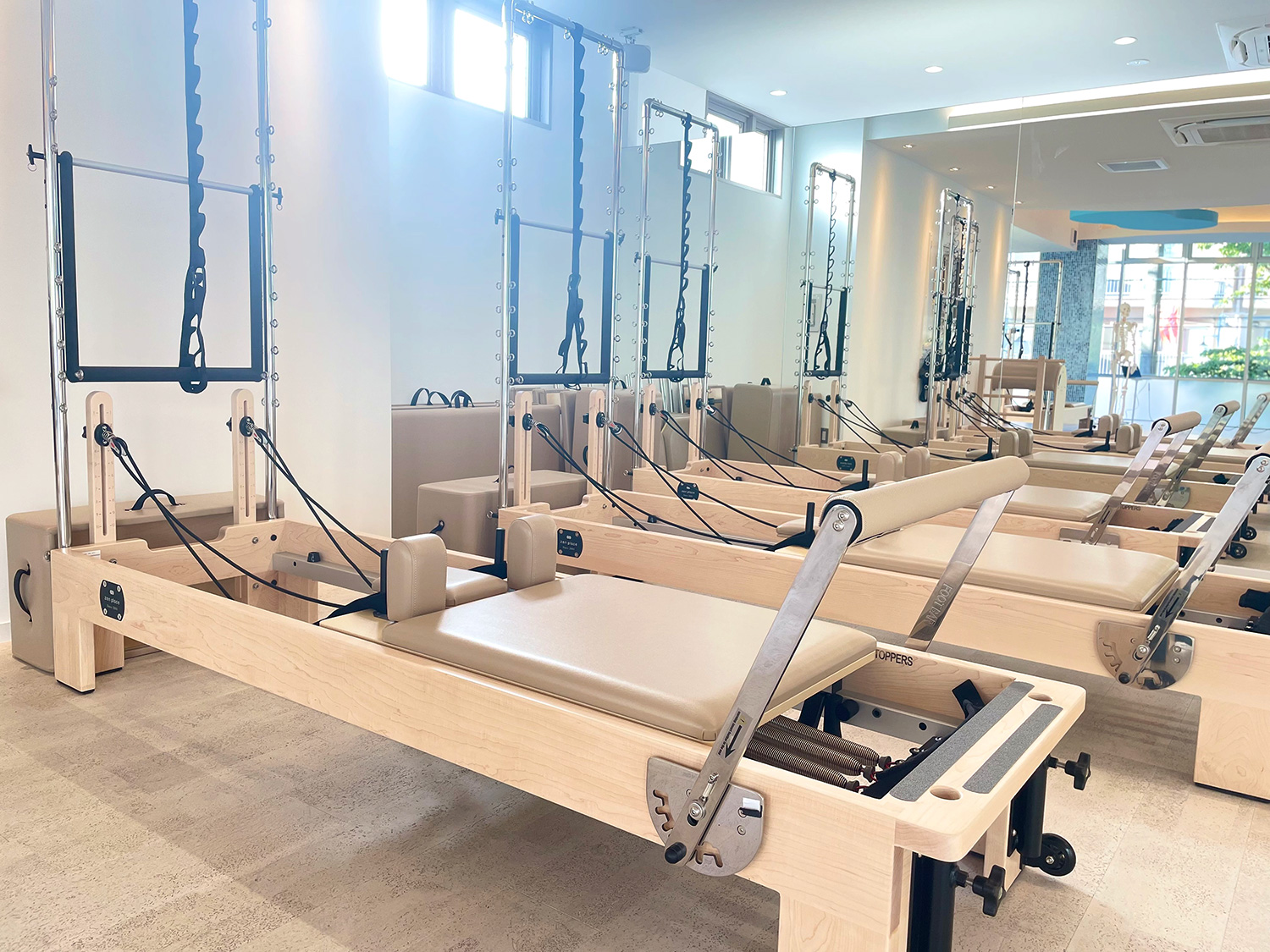 ピラティス専門スタジオならではのマットグループレッスンやエリア最大規模数のピラティスマシン台数を導入しているためピラティスマシンを利用したマシングループレッスン・プライベートレッスン数も充実しています。