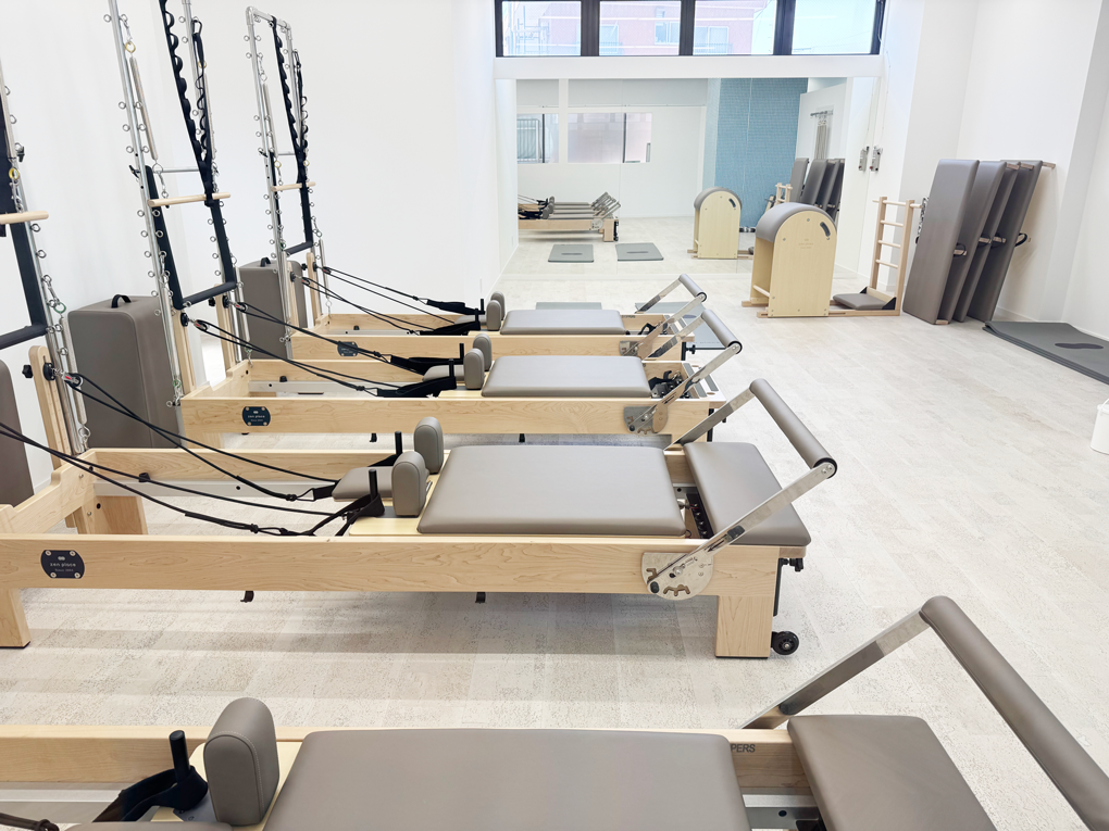 ピラティス専門スタジオならではのマットグループレッスンやエリア最大規模数のピラティスマシン台数を導入しているためピラティスマシンを利用したマシングループレッスン・プライベートレッスン数も充実しています。