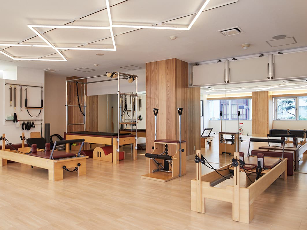 マットグループ、マシン(リフォーマー)グループ、プライベートのレッスンがあり、男性もOKです。体験・見学もお気軽に。全国150店舗がすべて利用可能です。