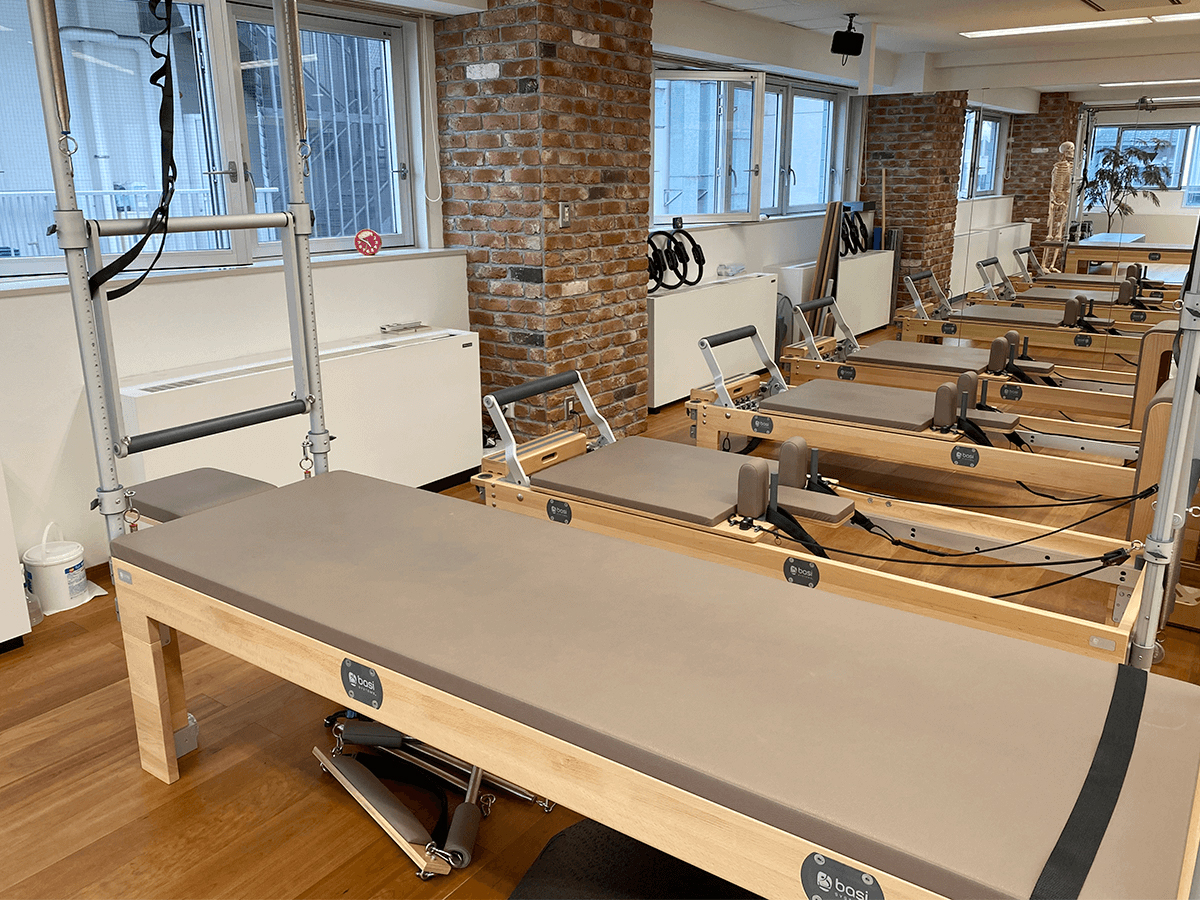 マットグループ、マシン(リフォーマー)グループ、プライベートのレッスンがあり、男性もOKです。体験・見学もお気軽に。全国150店舗がすべて利用可能です。