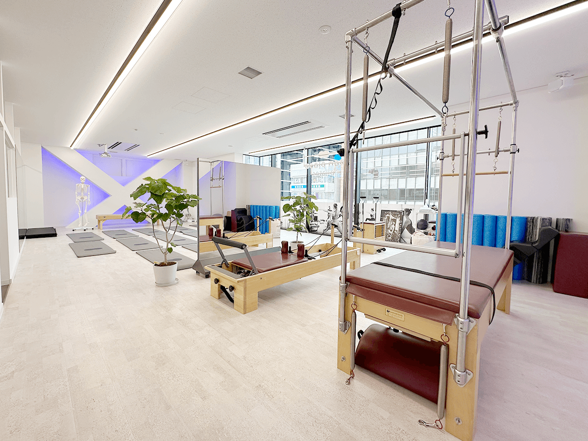 マットグループ、マシン(リフォーマー)グループ、プライベートのレッスンがあり、男性もOKです。体験・見学もお気軽に。全国150店舗がすべて利用可能です。